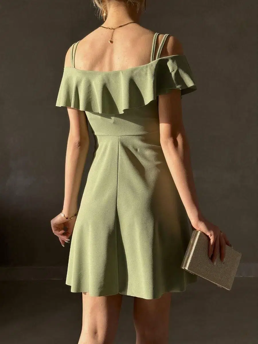 Kadın Askılı Yaka Detay Krep Kumaş Elbise (Renkli)
