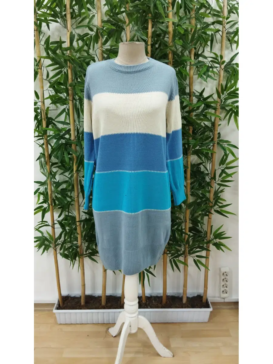 Kadın Bisiklet Yaka Çizgili Triko Mini Elbise