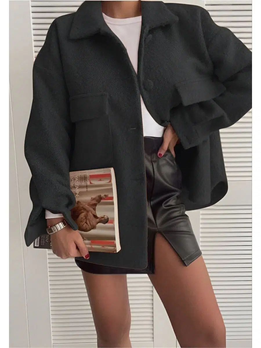 Kadın Cep Detay Düğmeli Buklet Kumaş Ceket (Renkli)