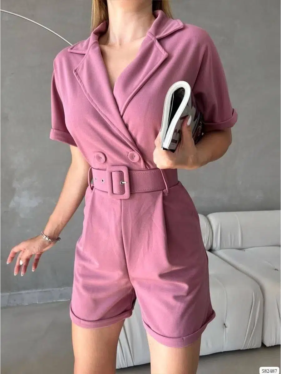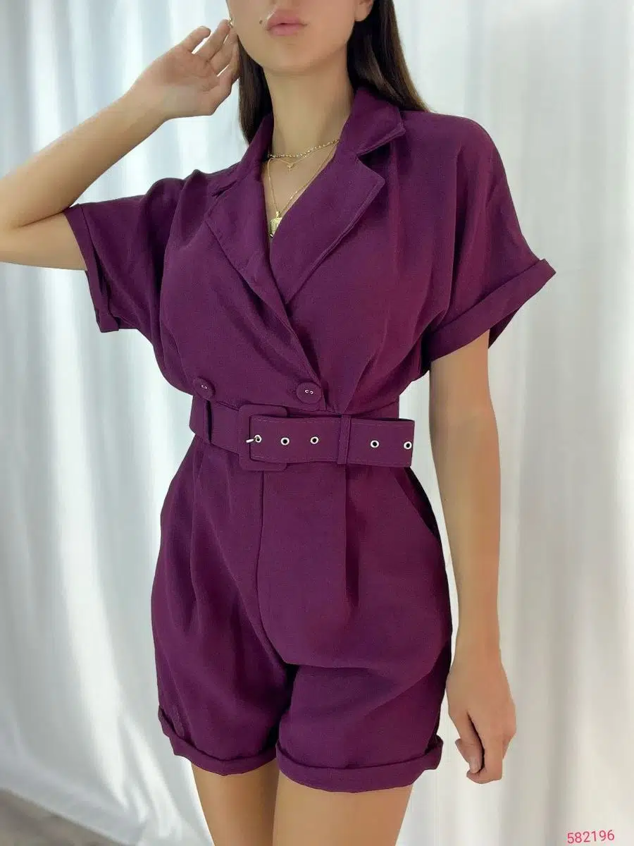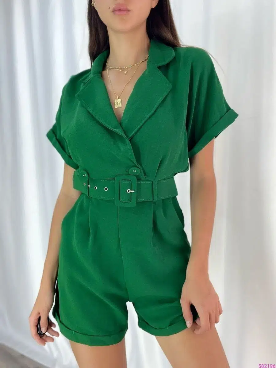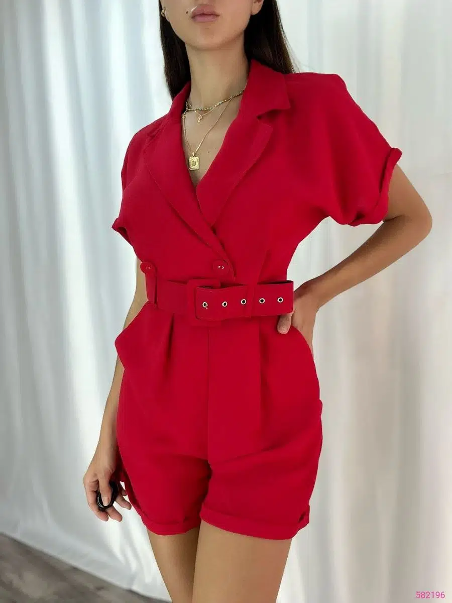 Kadın Dokuma Krep Kumaş Kemerli Şort Tulum (Renkli)