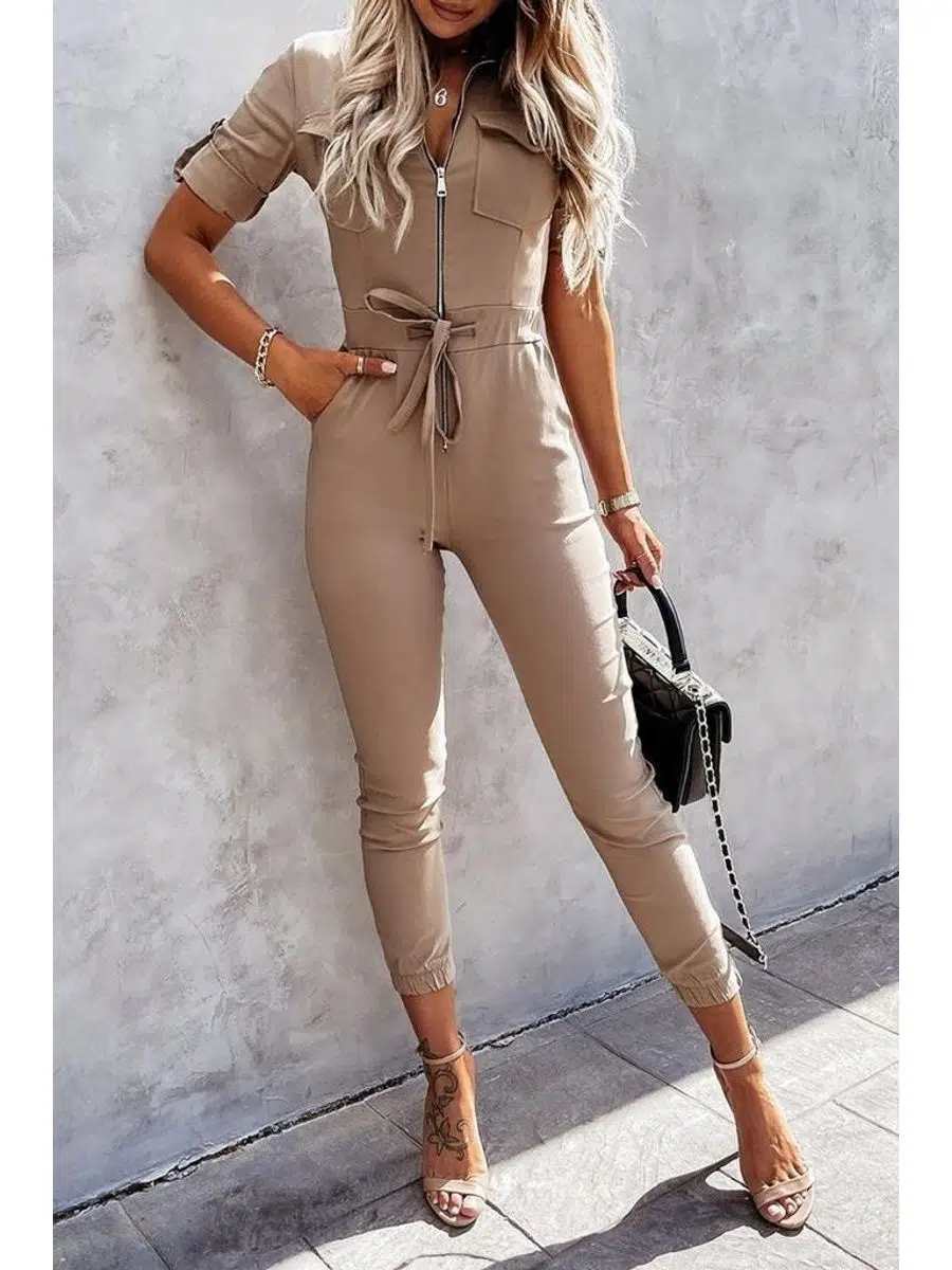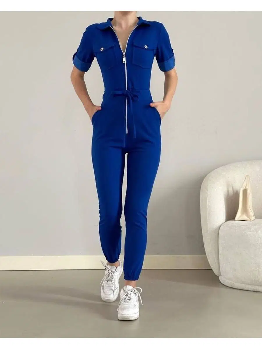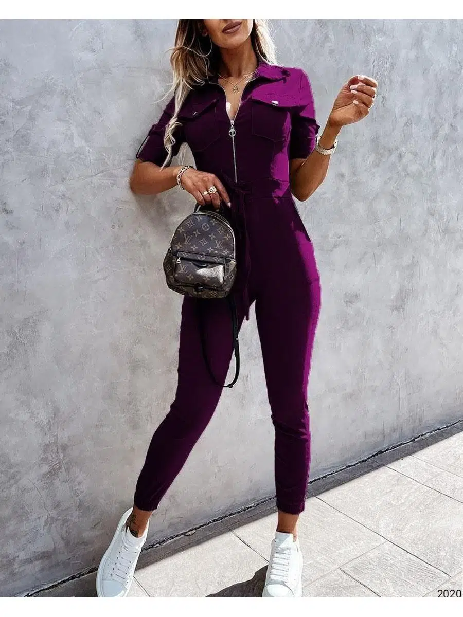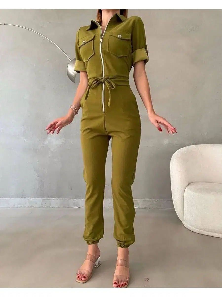 Kadın İthal Krep Kumaş Fermuarlı Cep Detay Kuşaklı Tulum (Renk Seçenekli)