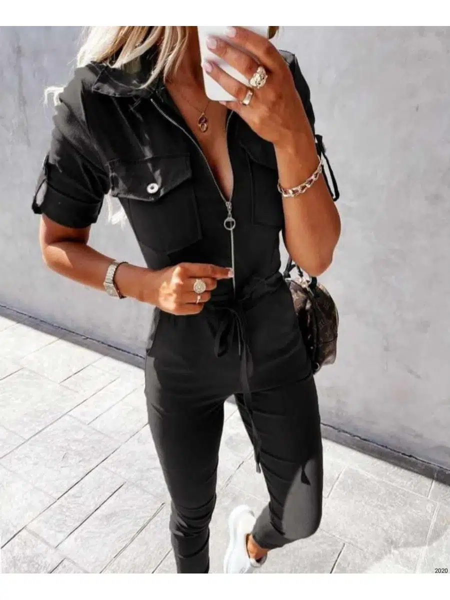 EtiketlerKadın İthal Krep Kumaş Fermuarlı Cep Detay Kuşaklı Tulum (Renk Seçenekli)