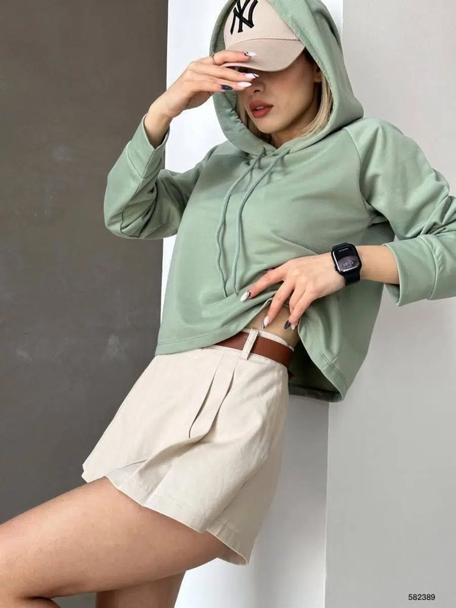 Kadın Kapüşonlu İki İplik Kumaş Sweatshirt (Renkli)
