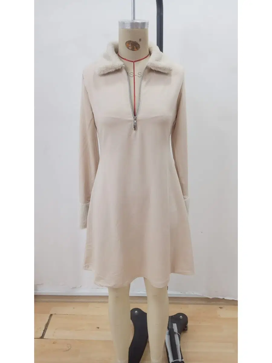 EtiketlerKadın Kol ve Yaka Kürk Detay Fermuarlı Viskon İki İplik Kumaş Mini Elbise