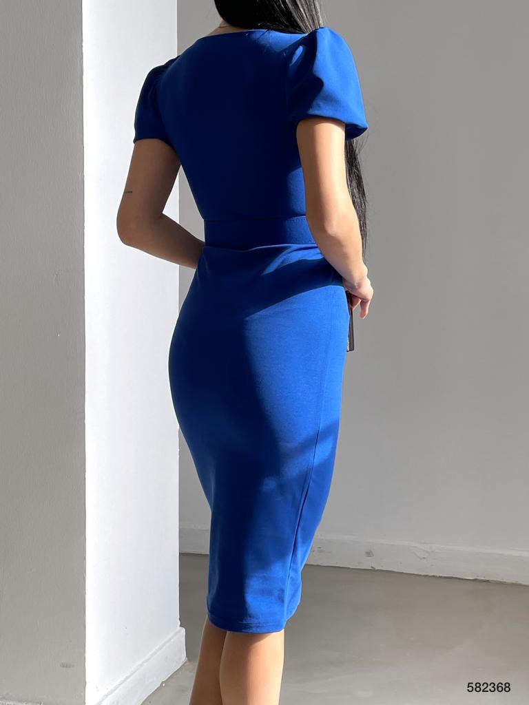Kadın Kruvaze Yaka Bağlamalı Beli Lastikli Viskon Kumaş Yazlık Elbise (Renkli)