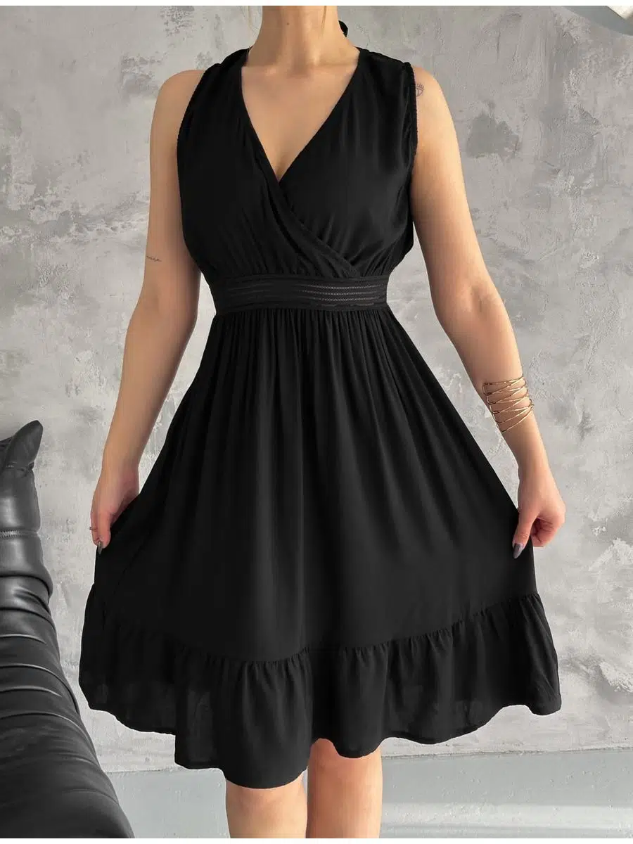 EtiketlerKadın Kruvaze Yaka Bağlamalı Beli Lastikli Viskon Kumaş Yazlık Elbise (Renkli)