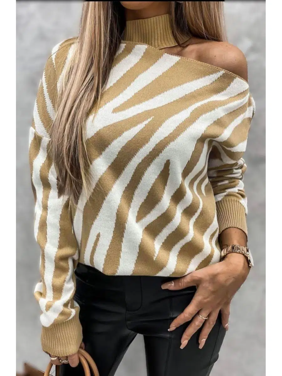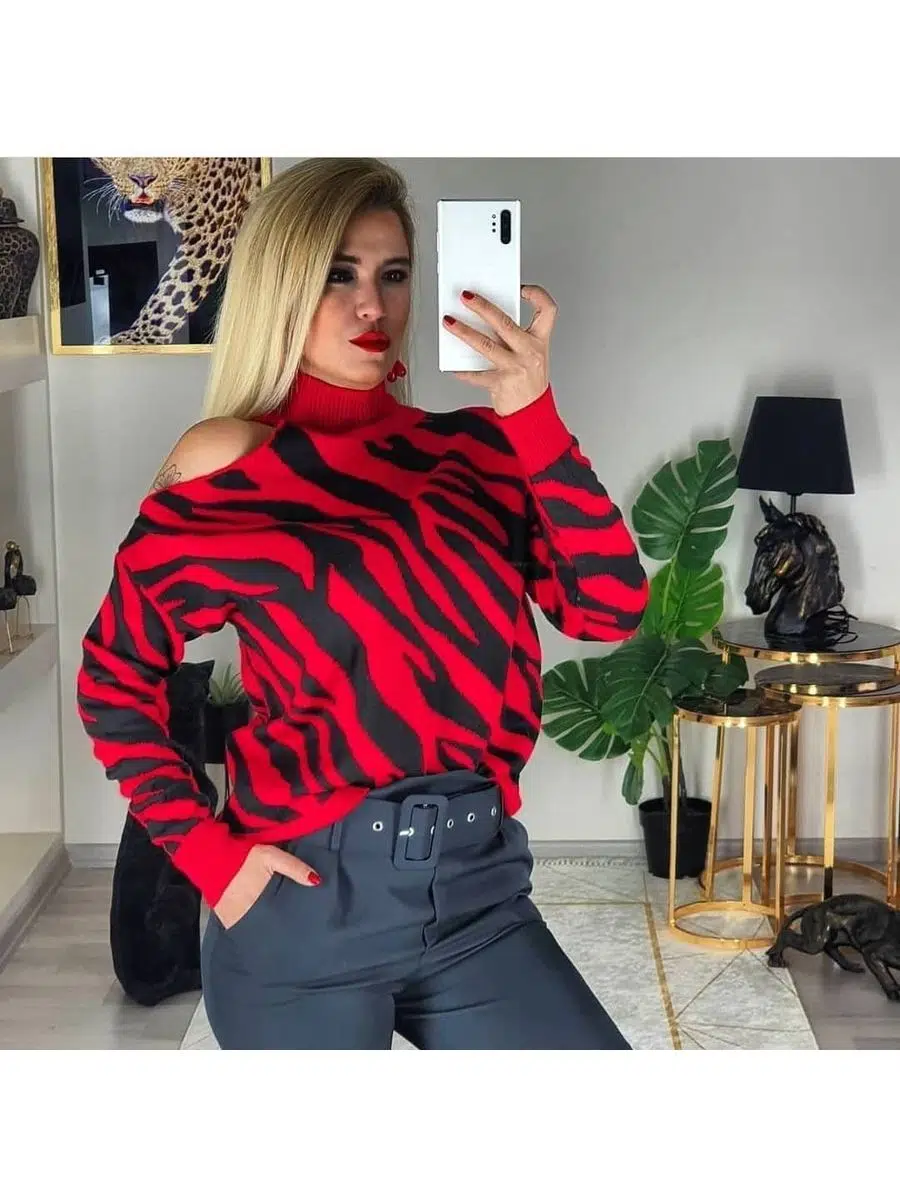 Kadın Omuz Detaylı Desenli Triko Kazak (Renk Seçenekli)