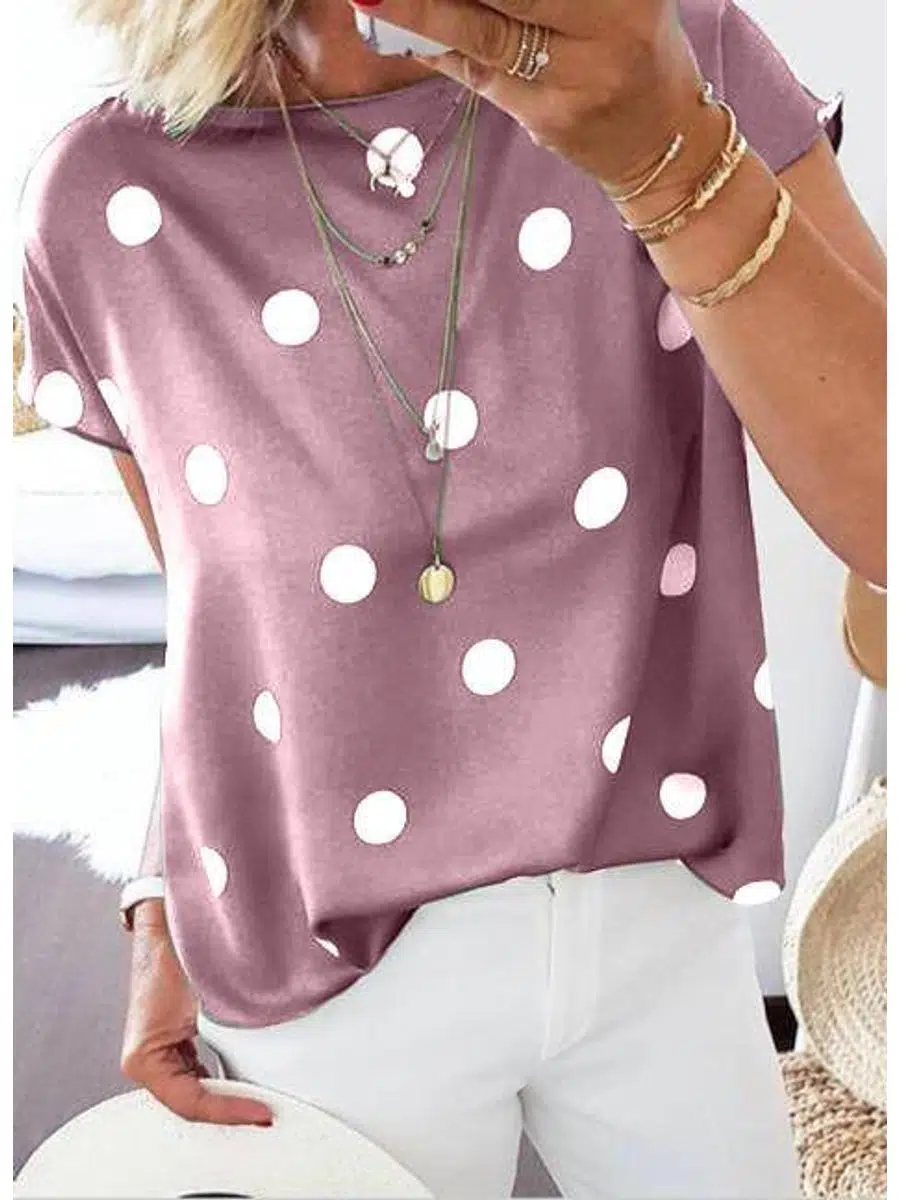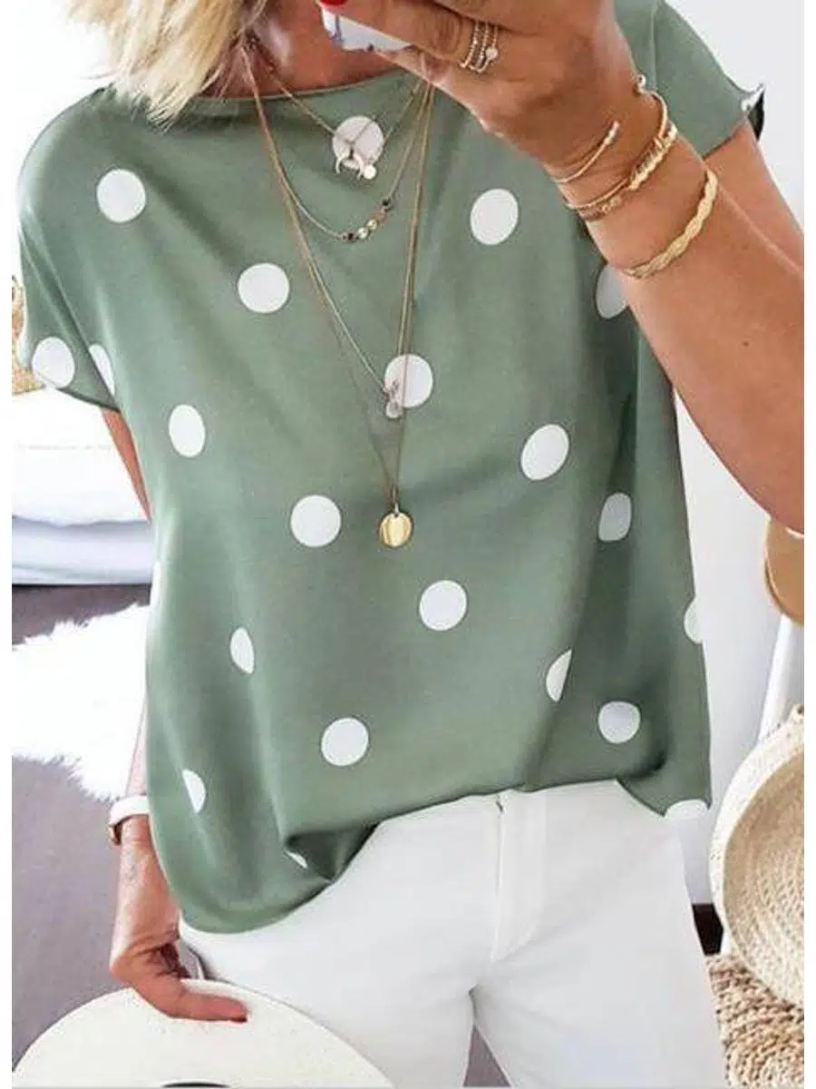 Kadın Puantiyeli Moskrep Kumaş Basic Bluz (Renkli)