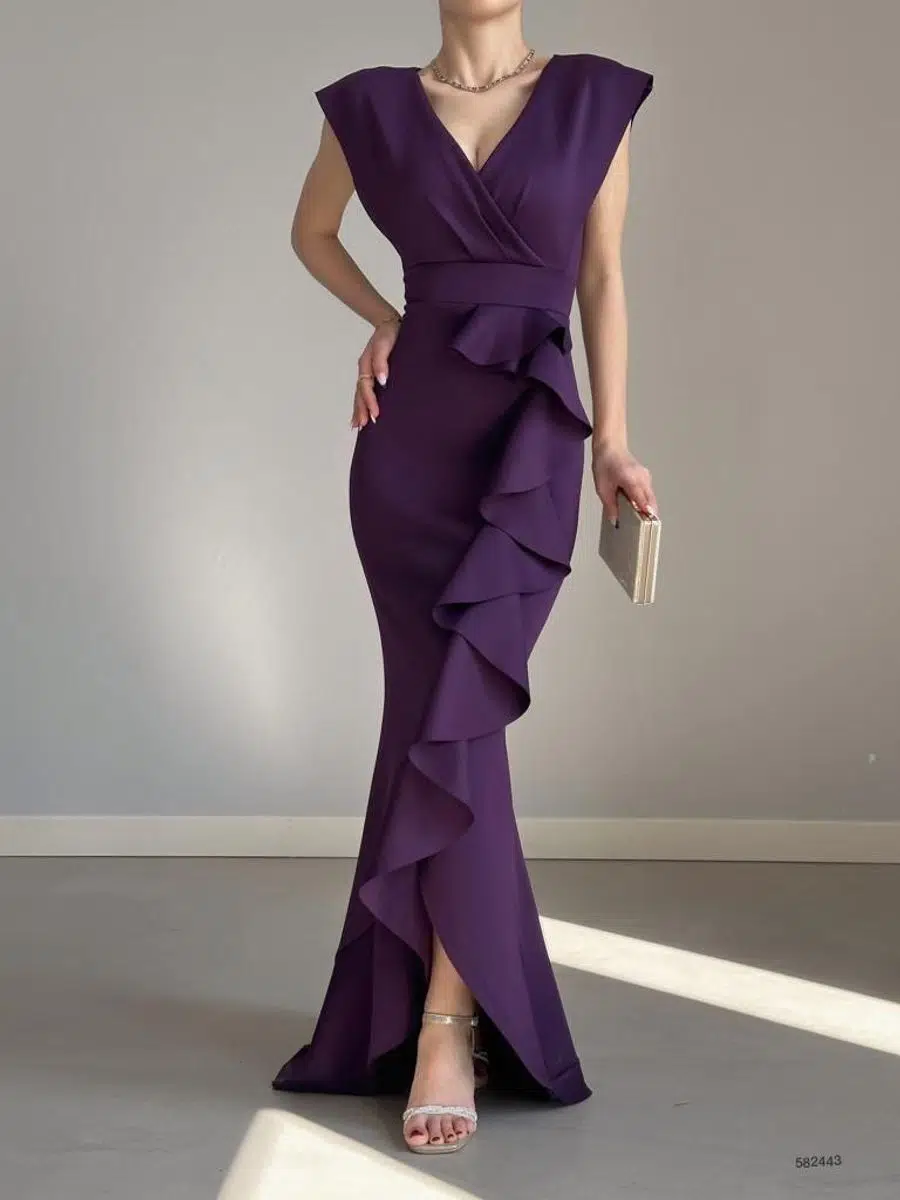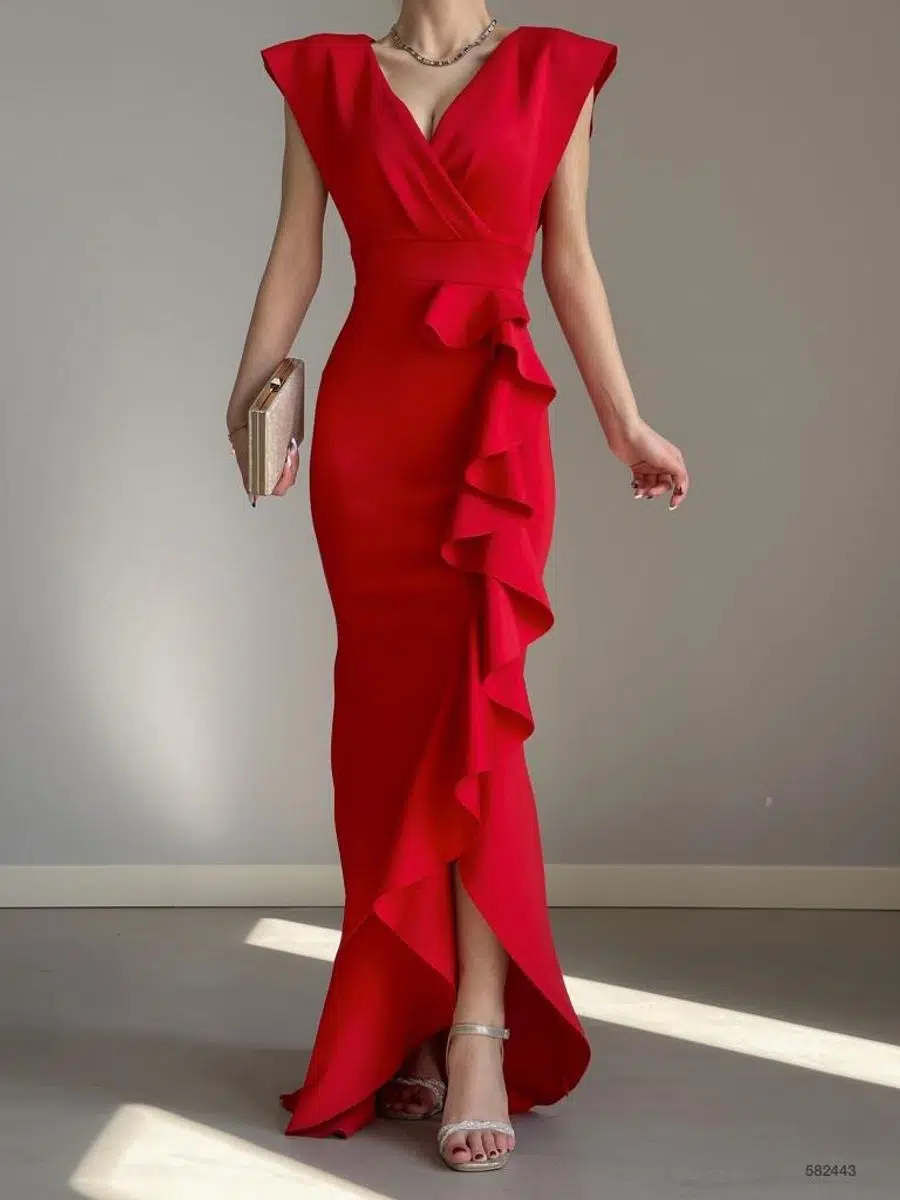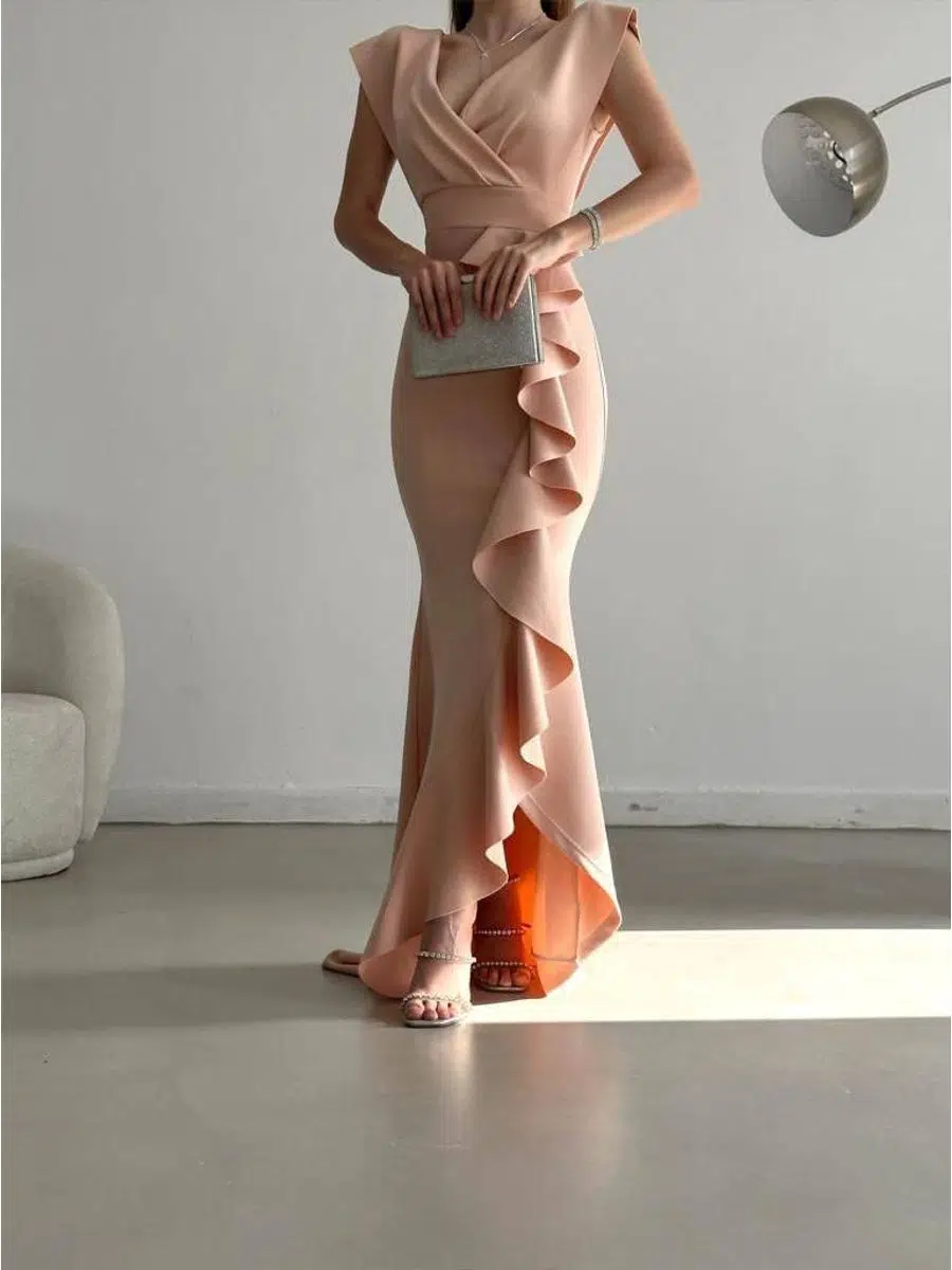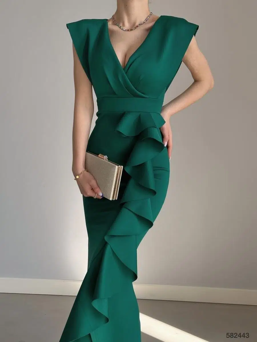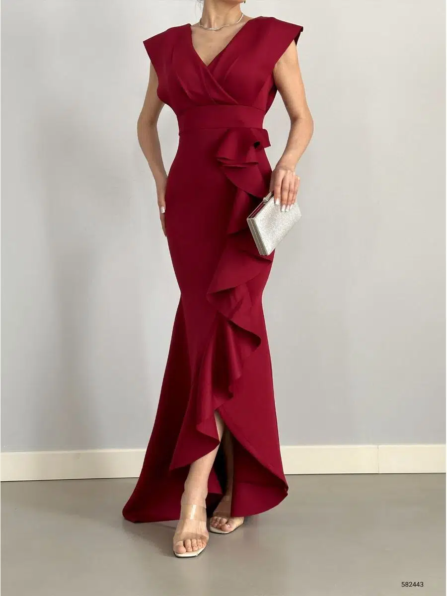 | Etiketler | Kadın Scuba Dalgıç Kumaş Kruvaze Yaka Eteği Volanlı Abiye Elbise (Renkli) |