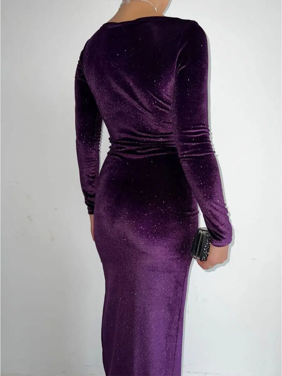 Kadın Balon Kol Kruvaze Yaka Krep Kumaş Midi Boy Elbise (Renkli)