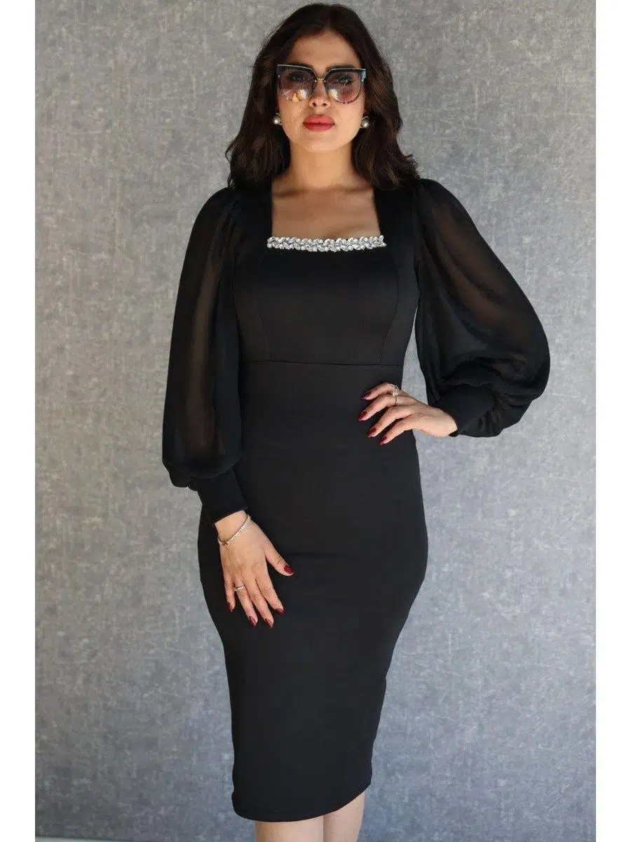 | Etiketler | Kadın U Yaka Kolları Tül Yaka Taş Detay Abiye Elbise (Renkli) |
