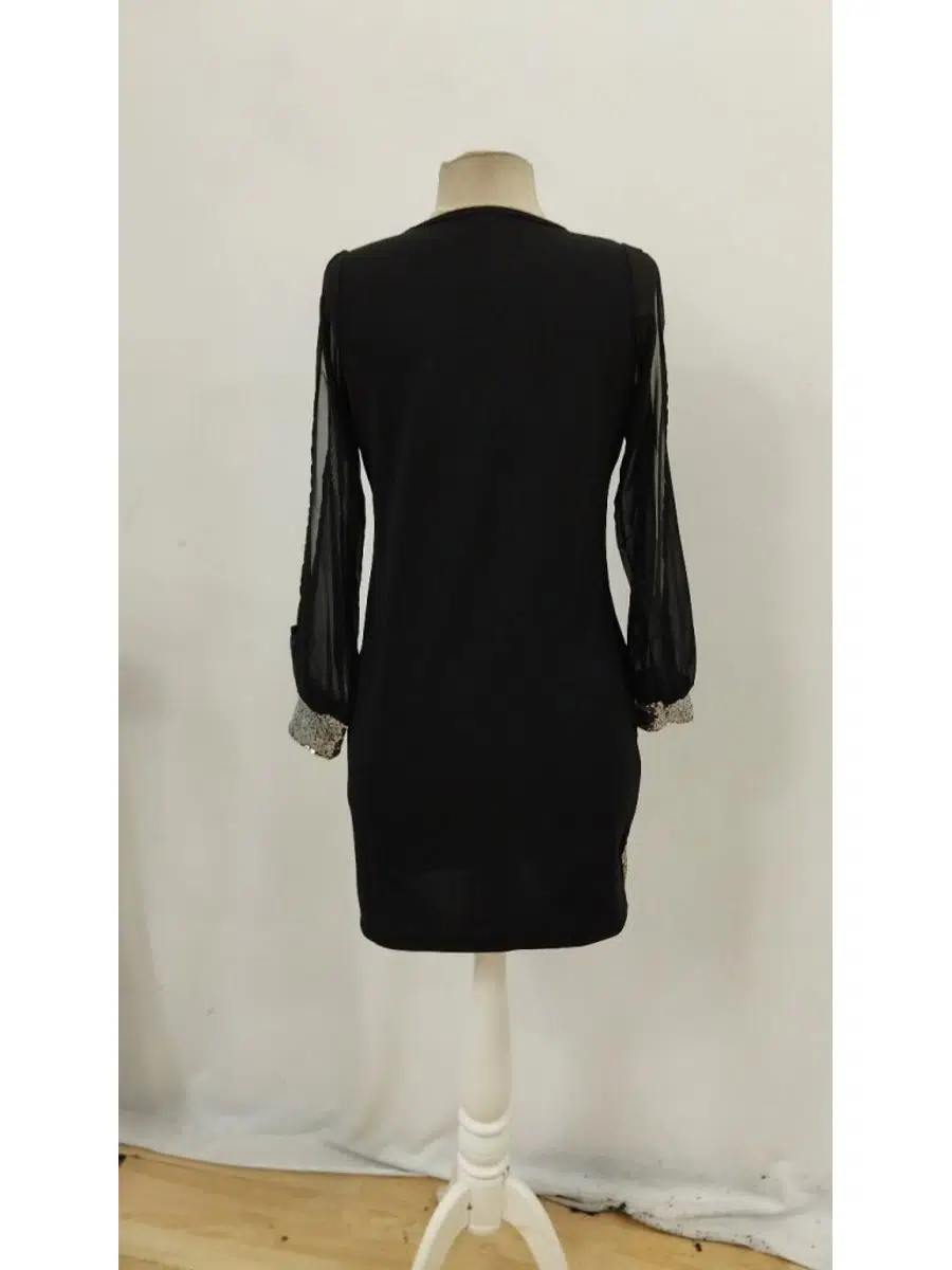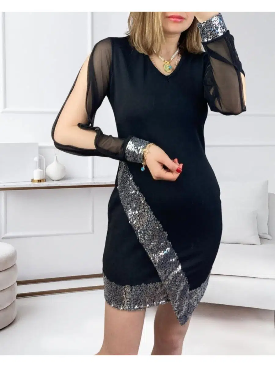 EtiketlerKadın V Yaka Pulpayet İthal Krep Mini Elbise