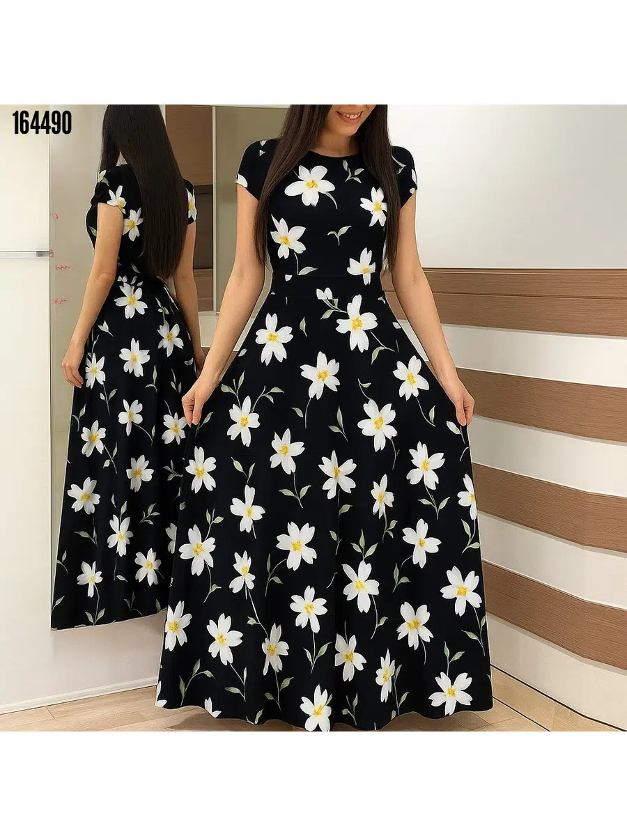 Tam boy puantiyeli krep kumaş elbise